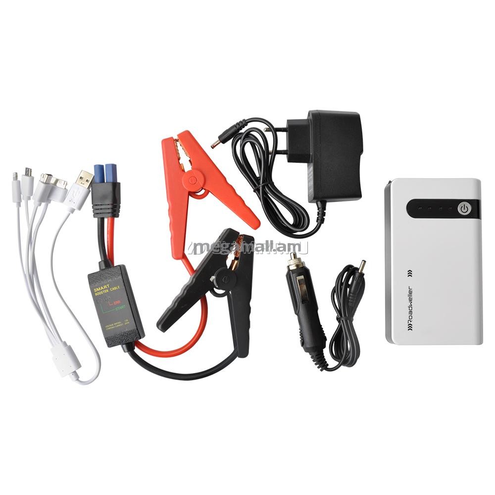 Автомобильное пускозарядное устройство Roadweller RW-JS-8000. Портативное универсальное пускозарядное устройство Roadweller позволит вам завести автомобиль в случае разряженного аккумулятора, зарядить мобильные устройства или послужить в качестве фонарика.