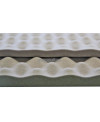 Особые свойства и форма применяемой марки ППУ делает материал вязкоэластичным (имеет "память формы"), более влагостойким, неподверженным гниению и улучшает звукопоглощающие свойства основы материала более чем на 60%, не имеет неприятных запахов, не пачкается.