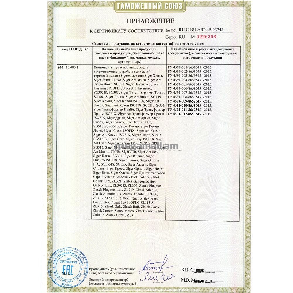 - фиксатор для корректировки прохождения штатного ремня безопасности по плечу ребенка в возрасте от 6 лет;