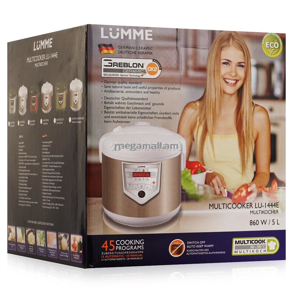 Стильная многофункциональная мультиварка Lumme LU-1444E станет незаменимым помощником на вашей кухне. Множество встроенных программ позволяют без труда готовить различные блюда. Функция "Мультиповар" дает возможность устанавливать любые настройки времени и температуры для приготовления ваших любимых блюд. Технология 3D-нагрева обеспечивает равномерное распределение тепла и эффективное поддержание температуры. Съемная чаша с керамическим покрытием позволяет готовить продукты с минимальным количеством масла, сохраняя вкусовые качества и аромат готового блюда. Интеллектуальная система защиты от перегрева гарантирует безопасное использование прибора.