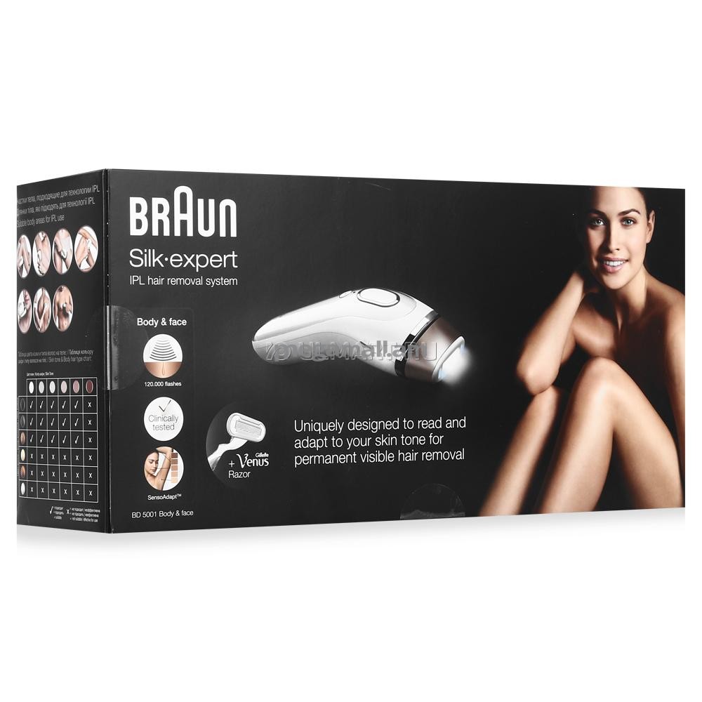 Удаление нежелательных волос на длительный срок в домашних условиях. Эффективность технологии Braun Silk-expert Intense Pulsed Light (IPL) на базе профессиональных технологий импульсного света доказана в ходе клинических испытаний в области перманентного удаления видимых волос. Самая безопасная технология IPL: уникальный сенсор тона кожи SensoAdapt всегда обеспечивает необходимую интенсивность света для наиболее безопасного и эффективного удаления волос. В комплект входит бритва Gillette Venus для гладкого и чистого бритья.