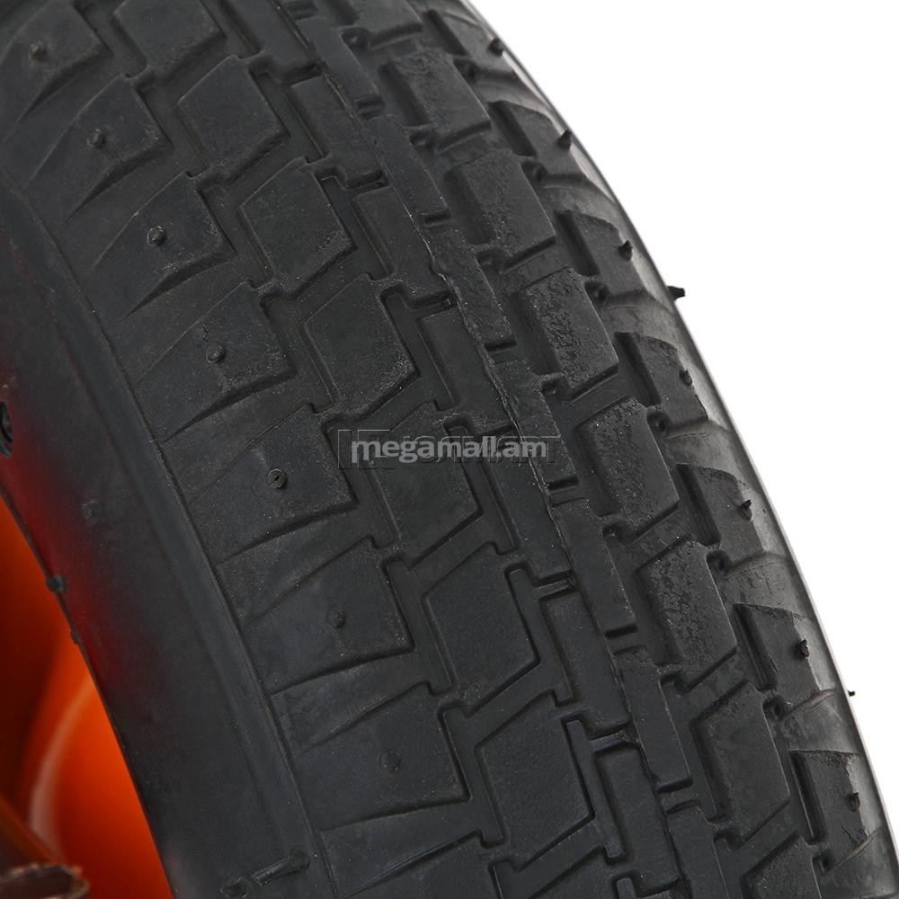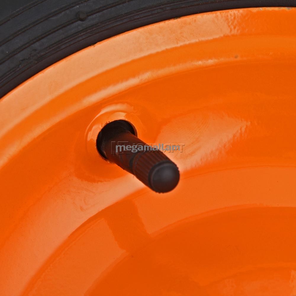 Колесо «PALISAD 68948» для садовой тачки. В оси колеса установлены шариковые подшипники, на металлический обод надеты камера и резиновая шина. Диск покрашен порошковой краской для защиты от коррозии. Надувать колесо можно автомобильным компрессором или обычным механическим насосом. Диаметр колеса 380 мм.