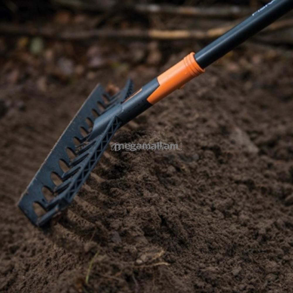 Универсальные грабли Fiskars Solid 135064 являются многофункциональным инструментом садового использования. На насадке расположено 12 зубьев, которые имеют дополнительный изгиб внутри. Зубцы расположены на оптимальном расстоянии один от другого и обладают специфическим пружинящим эффектом. Грабли Fiskars Solid отлично подходят для сгребания скошенной или сухой травы, опалых листьев и мусора с газона. На грядках помогут мульчировать и подготавливать почву к посеву.Универсальные грабли Fiskars Solid 135064 являются многофункциональным инструментом садового использования. На насадке расположено 12 зубьев, которые имеют дополнительный изгиб внутри. Зубцы расположены на оптимальном расстоянии один от другого и обладают специфическим пружинящим эффектом. Грабли Fiskars Solid отлично подходят для сгребания скошенной или сухой травы, опалых листьев и мусора с газона. На грядках помогут мульчировать и подготавливать почву к посеву.