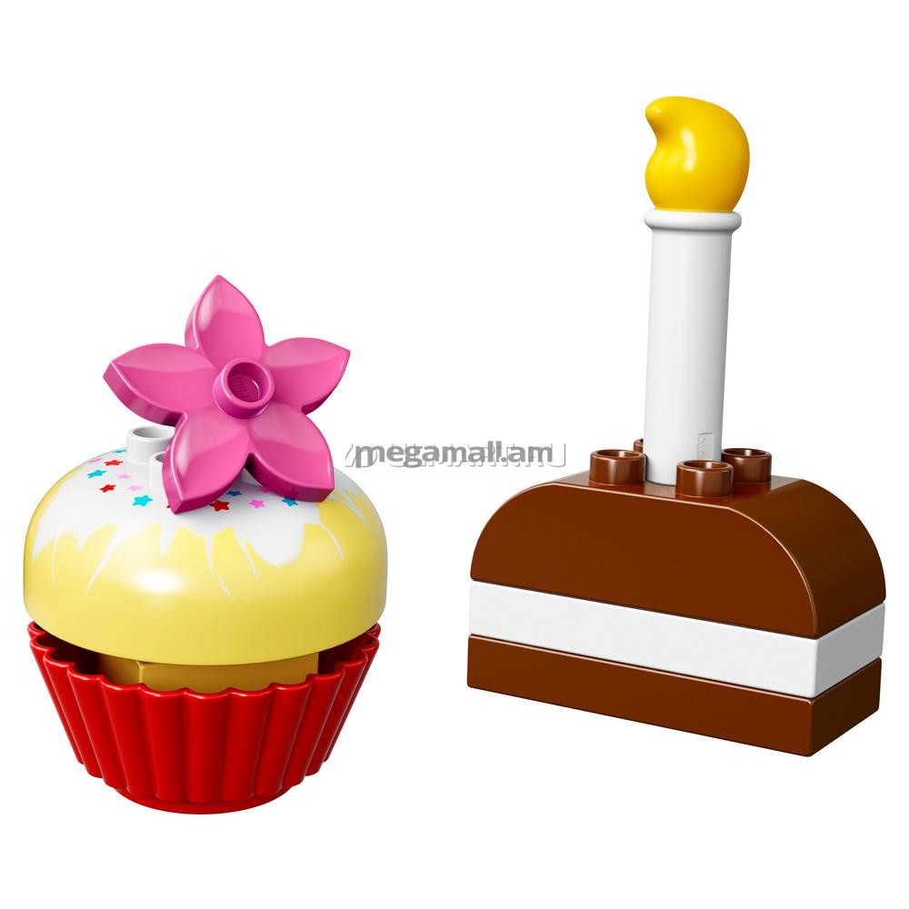 LEGO DUPLO 10850 Мои первые пирожные - набор, который сможет заинтересовать вашего малыша. Маленький исследователь только начинает познавать новый для него мир, поэтому его ждет множество интересных открытий. Наверняка его взгляд остановится на интересных по форме детальках, которые складываясь друг с другом, образуют красивые пирожные! Юный кондитер сможет попробовать себя в кулинарном деле, изобретая новые рецепты и украшая свои лакомства декоративными элементами. Благодаря высококачественному материалу все детали абсолютно безопасны и удобны для маленьких пальчиков малыша, который сможет натренировать свою мелкую моторику рук в легкой игровой форме. Lego Duplo сделает детство вашего ребенка насыщенным и ярким!