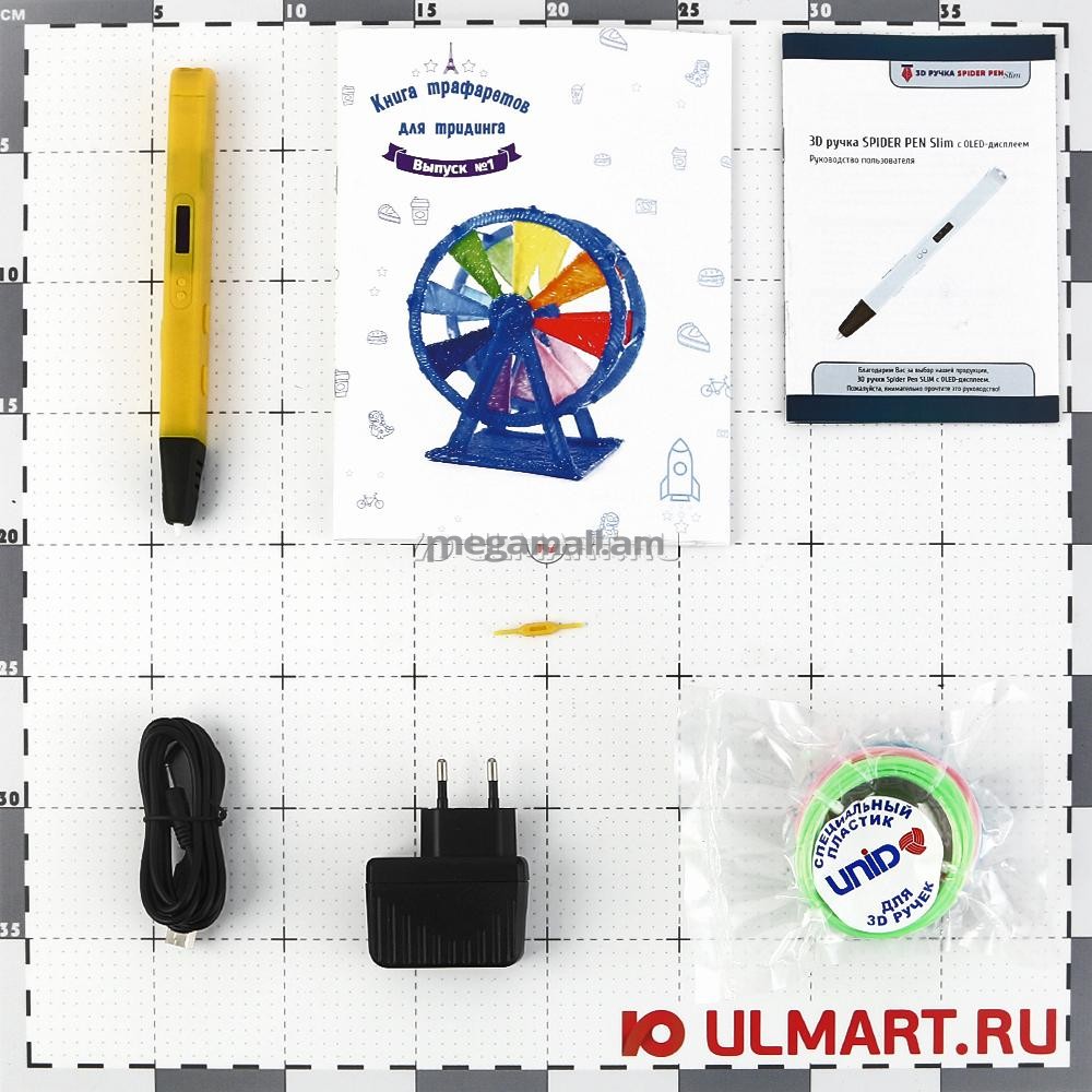 3D ручка Spider Pen Slim с OLED-дисплеем - функциональный инструмент для современного творчества. Рисунки на листах карандашами и красками остались в прошлом: пришла новая эпоха объемных изображений и моделек, которые можно создать при помощи необычного пера, в роли чернил которого выступают нити пластика. Благодаря его свойствам под действием температуры он способен принимать любую форму, а значит, что для фантазии юного художника не существует преград. Для достижения результата он может воспользоваться регулировкой температуры, которая непременно отобразится на дисплее, а также изменением скорости подачи материала. Работать с устройством можно как от внешнего аккумулятора, так и от ноутбука, а поддержка пластика ABS, PLA и UNID PRO позволит будущему владельцу создавать разные поделки.