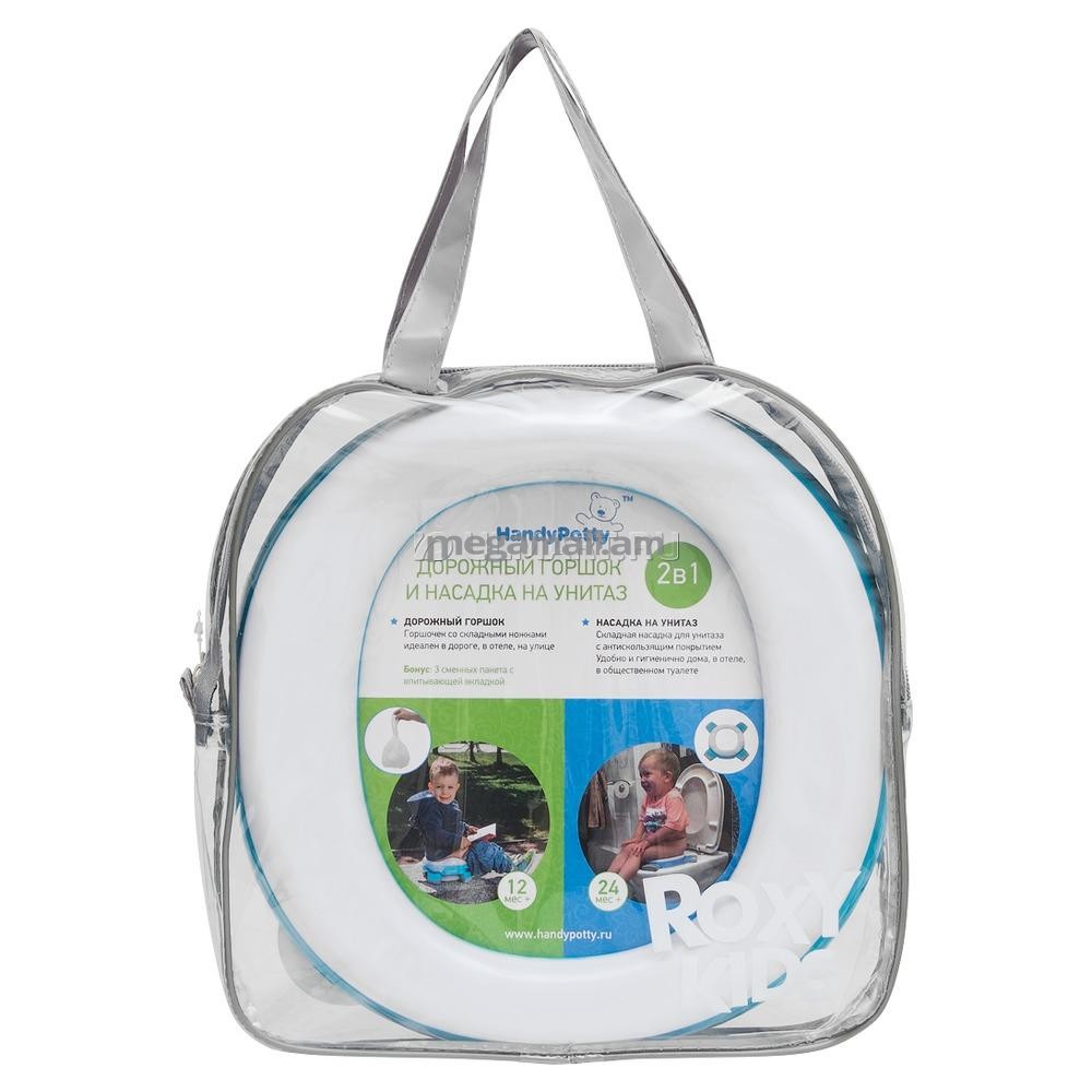 Дорожный горшок и насадка на унитаз HandyPotty помогут сделать путешествие еще комфортнее для малыша. Комбинированная модель сочетает в себе несколько устройств: обычный горшок, дорожный горшок и адаптер для унитаза. Специально разработанная конструкция сочетает все необходимые функции для удобства ребенка. Ему будет комфортно на широком сиденье с надежной опорой из четырех ножек, которые приподнимают его на оптимальную высоту. В этом режиме обычного горшка удобнее использовать многоразовую пластину, которая легко отмывается. Во время поездки целесообразнее использовать одноразовые сменные пакеты, устанавливаемые под сиденье специально для комфорта ребенка. После использования пакеты утилизируются, как подгузники. Использование устройства в качестве адаптера позволят установить его, как сиденье на взрослый унитаз, не допуская контакта с бактериями на крышке. Многофункциональное устройство позволит ребенку не испытывать нужду, где бы он не находился благодаря своим компактным размерам и небольшому весу. HandyPotty возьмет все хлопоты на себя, позволяя Вам и ребенку всецело наслаждаться жизнью.
