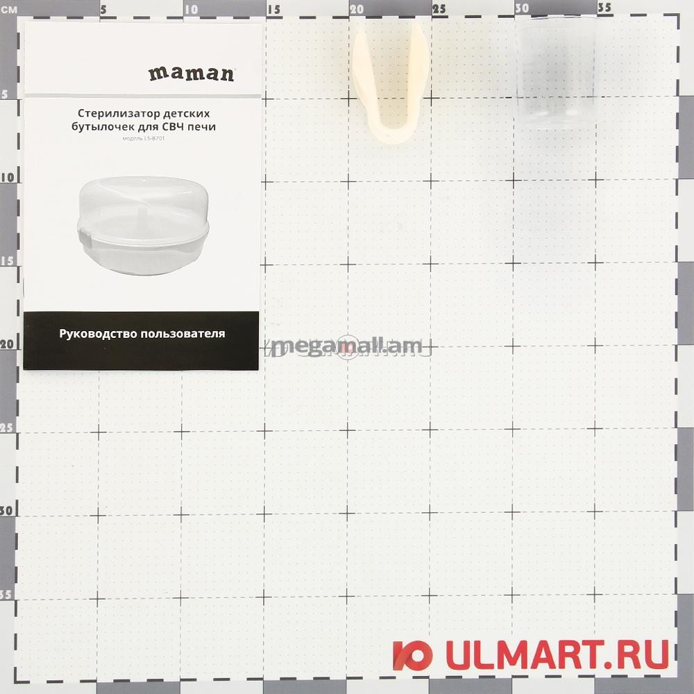 Стерилизатор для СВЧ печи Maman LS-B701 - верный помощник заботливой мамочки на кухне. Самочувствие крохи напрямую зависит от гигиенических условий, именно поэтому важно соблюдать чистоту детской посуды и аксессуаров. В эргономичный стерилизатор легко помещается одновременно до 6-ти бутылочек разного размера, простой способ применения не вызовет сложностей: достаточно налить необходимое количество воды в прибор и установить его в микроволновую печь для того, чтобы процесс стерилизации начался.