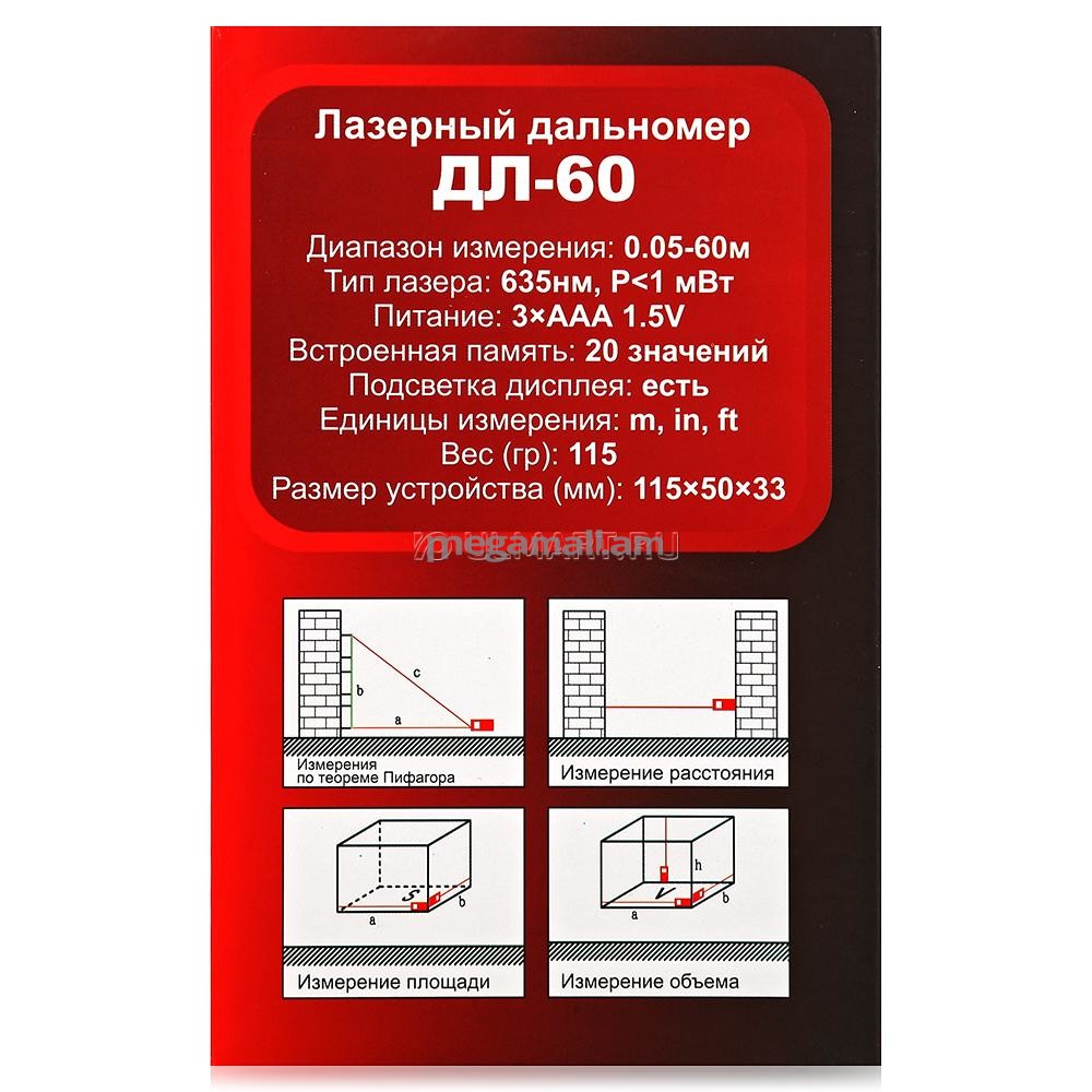 Максимальная дальность измерения, метров60