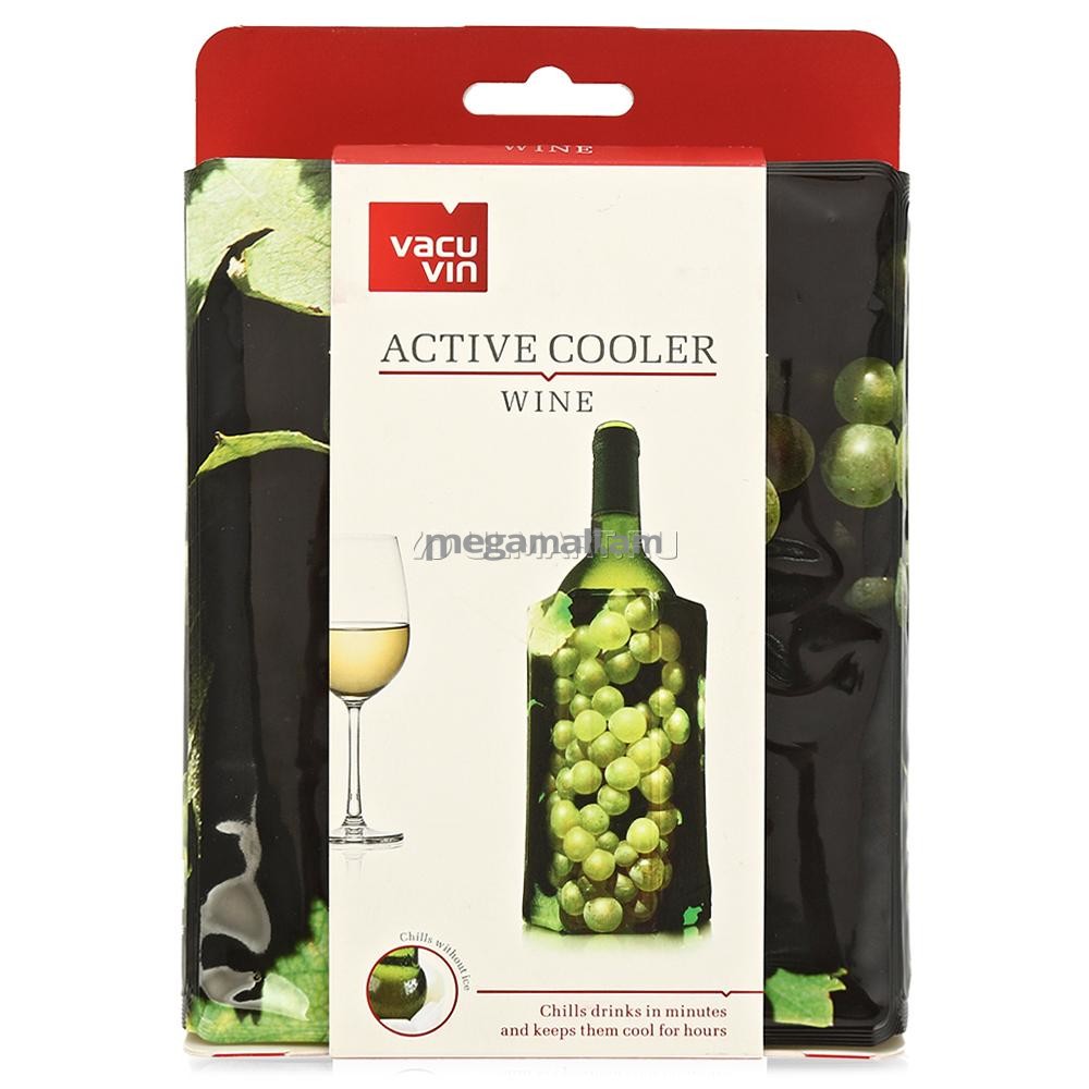 Оригинальная охладительная рубашка для вина VacuVin представляет собой очень холодный мягкий футляр, позволяющий в среднем за 5 минут охладить бутылку вина емкостью 0,75 л от комнатной температуры до необходимой и поддерживать ее несколько часов. Охладительная рубашка оформлена изображением красного винограда.