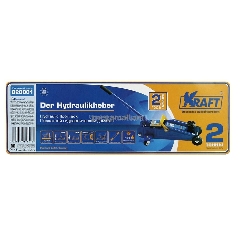 Гидравлический подкатной домкрат Kraft КТ 820001 позволяет осуществлять подкат-установку под груз, плавный подъем и точную остановку на заданной высоте. Благодаря особенностям конструкции обеспечивает высокую устойчивость к перекосу и падению груза.