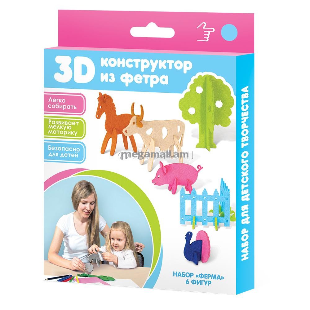 Feltrica 3D-конструктор из фетра Ферма - набор, который переворачивает традиционные представления о том, как должен выглядеть конструктор! Специально для еще маленьких пальчиков детали изготовлены из специального полиэстера, который дарит ребенку мягкое и приятное прикосновение. Благодаря специальному крою красочные элементы легко соединяются между собой в очаровательные модельки фермерских животных, которые наверняка станут персонажами интересных игровых сценок. В необычной форме маленький исследователь не только познакомится с представителями фауны, но и натренирует мелкую моторику рук, сформирует цветовое восприятие и разовьет тактильные ощущения.