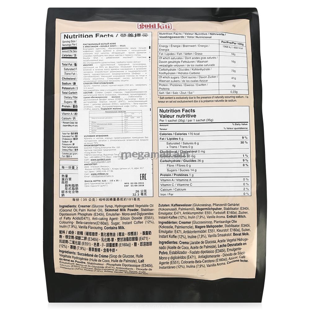 Кофе ДАБЛ ШОТ - это сбалансированное сочетание ароматной, бодрящей арабики и нежных сливок пробуждает самые яркие чувства и эмоции с первого глотка, незабываемые ощущения в каждой чашке. Кофе ДАБЛ ШОТ изготовлен с добавлением инулина. Инулин - природный полисахарид, на 95% состоящий из фруктозы, может употребляться при сахарном диабете 1 и 2 типа, а также после длительных и тяжелых заболеваний, оперативного вмешательства, людям, проживающим в экологически неблагополучных местах и работающих на вредном производстве, а также пожилого возраста. Инулин успешно применяется для поддержки энергетического баланса при соблюдении строгих низкокалорийных диет. Оказывает благотворное влияние на организм человека. Способствует размножению в пищеварительном тракте «дружественных» микроорганизмов (бифидо- и лактобактерий). Уменьшает всасывание глюкозы из пищи в стенки кишечника. Стимулирует синтез витаминов, активизирует механизмы защиты иммунной системы. Не отказывайте себе в удовольствии, попробуйте прямо сейчас.