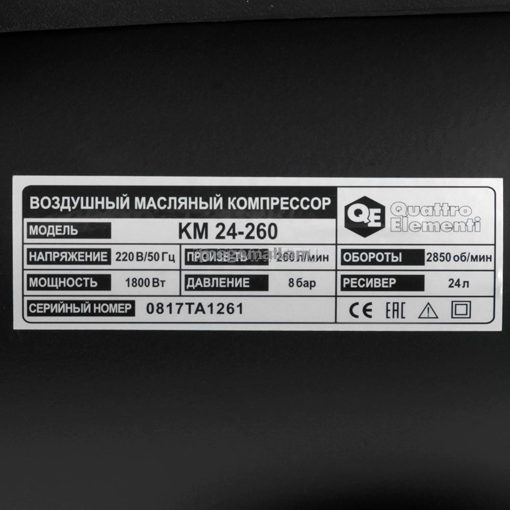 Компрессор Quattro Elementi KM 24-260, предназначенный для выполнения большого спектра работ по дому, техническому обслуживанию автомобиля и различных механизмов с применением сжатого воздуха