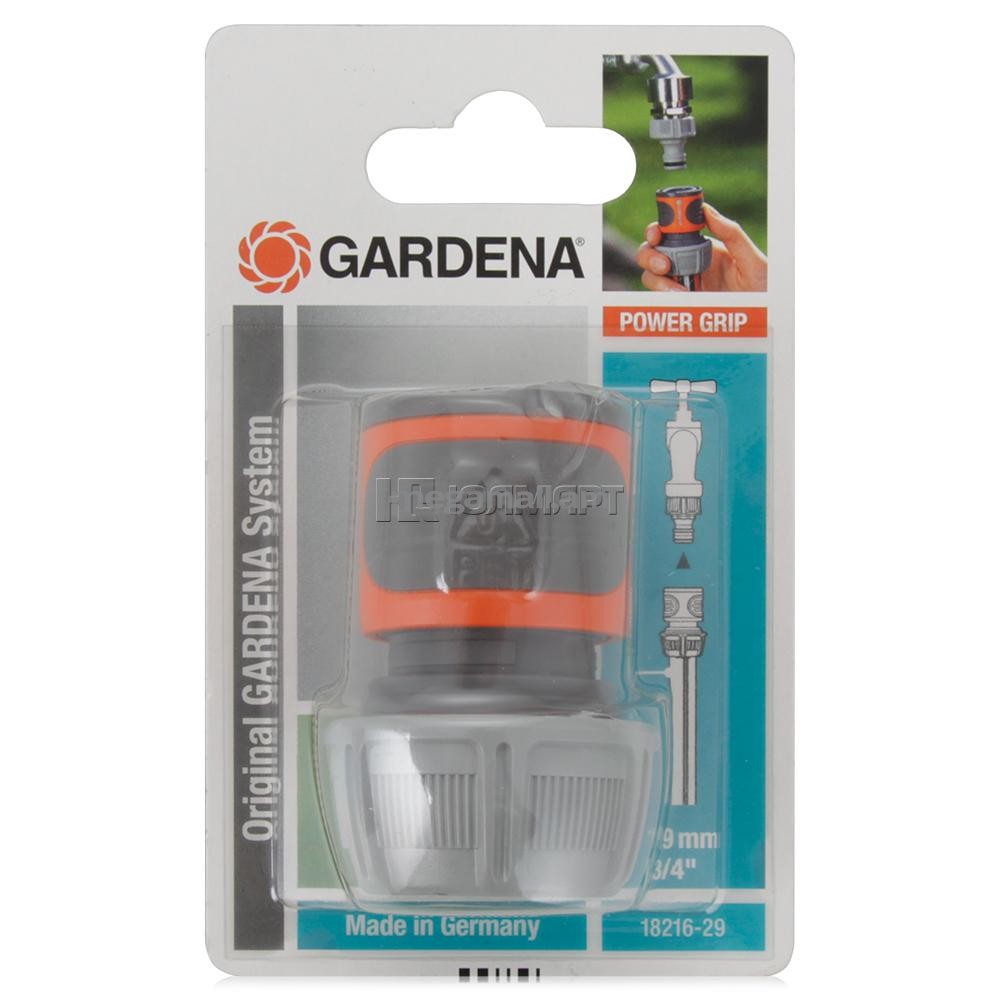 Коннектор стандартный Gardena 18216 легко снимается, если его потянуть на себя. Поверхность из мягкого рифленого пластика коннектора GARDENA позволяет удобно и крепко удерживать инструмент в руке. Коннектор снабжен резиновым кольцом, обеспечивающим защиту от повреждений. Новая форма зажимной гайки позволяет прочно зафиксировать коннектор со шлангом. Коннектор предназначен для шлангов диаметром 19 мм (3/4").