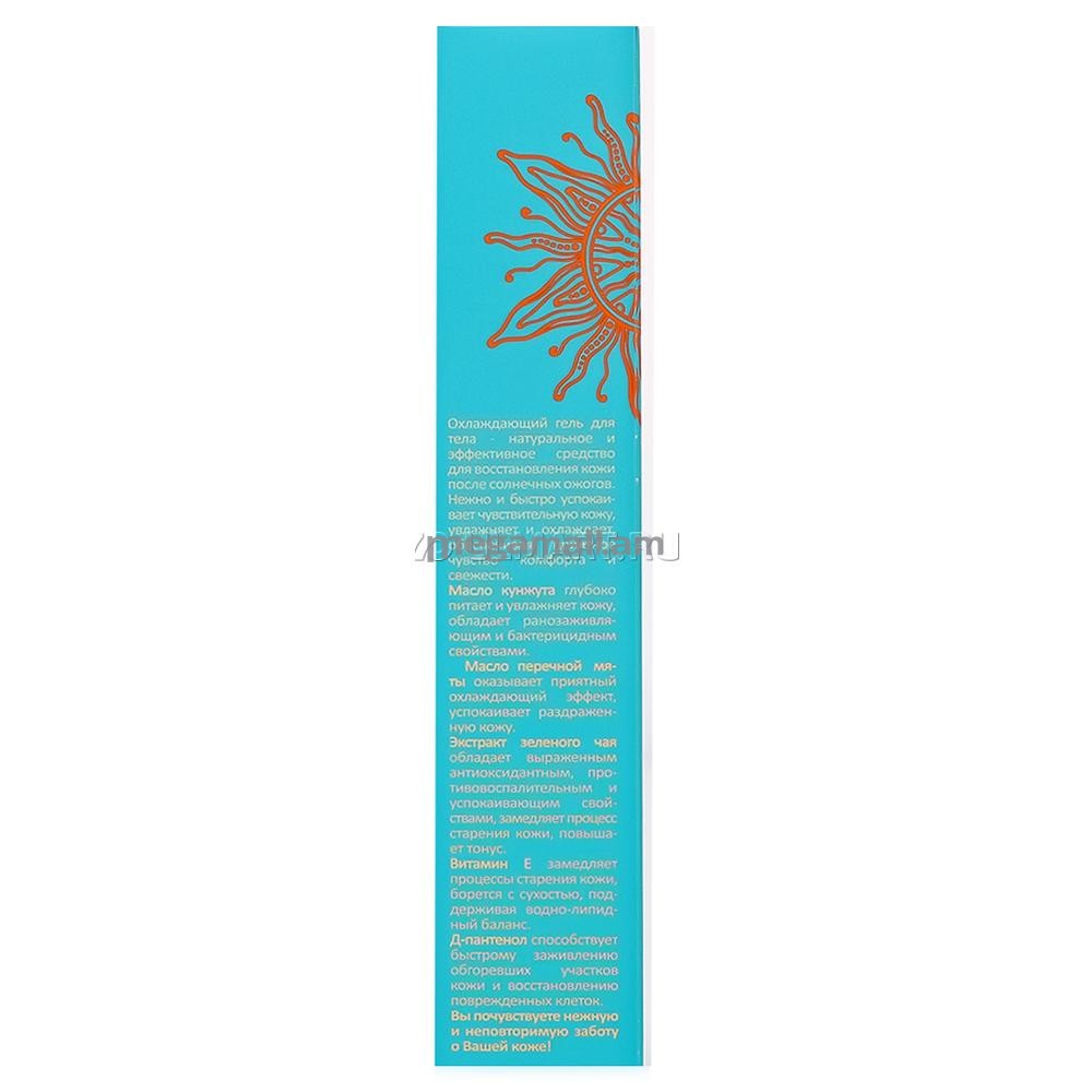 Охлаждающий гель для тела «Кафе красоты» - натуральное и эффективное средство для восстановления кожи после солнечных ожогов. Оно нежно и быстро успокаивает чувствительную кожу, увлажняет и охлаждает, обеспечивая приятное чувство комфорта и свежести. Входящее в состав масло кунжута глубоко питает и увлажняет кожу, обладает ранозаживляющим и бактерицидным свойствами. Экстракт перечной мяты оказывает приятный охлаждающий эффект, успокаивает раздраженную кожу. Экстракт зеленого чая обладает выраженным антиоксидантным, противовоспалительным и успокаивающим свойствами, замедляет процесс старения кожи, повышает тонус. Витамин Е замедляет процессы старения кожи, борется с сухостью, поддерживая водно-липидный баланс, а Д-пантенол способствует быстрому заживлению обгоревших участков кожи и восстановлению поврежденных клеток.