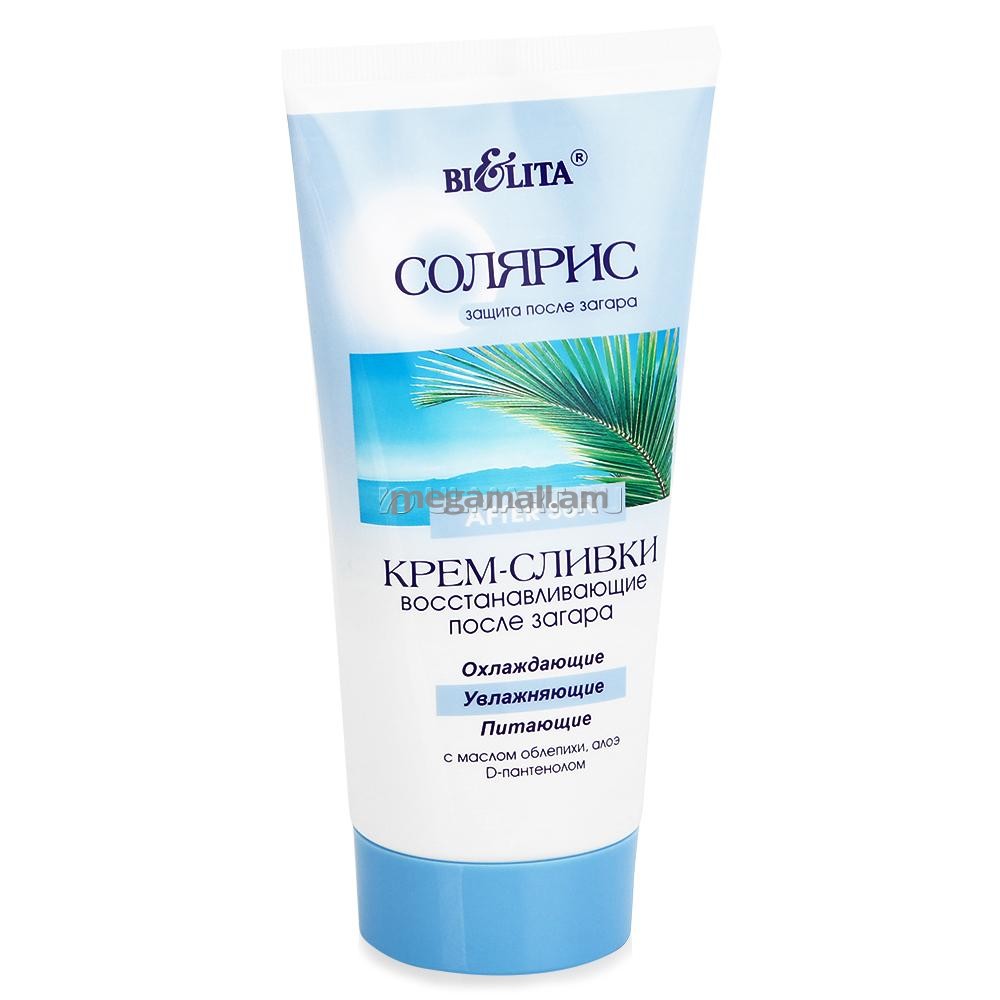 Восстанавливающий крем-сливки Bielita «Солярис» предназначены для снятия покраснения, раздражения, а также для увлажнения и охлаждения кожи после загара. Алоэ вера, пантенол и ментол, входящие в состав, увлажняют и охлаждают поврежденную кожу, масла облепихи, ши и жожоба смягчают и разглаживают кожу, придают мягкость и эластичность, а витамин Е и масло зародышей пшеницы нейтрализуют действия свободных радикалов.