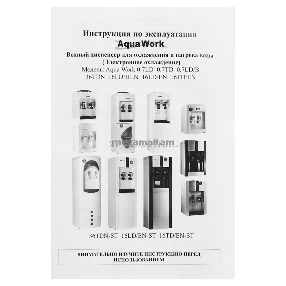 Кулер для воды Aqua Work 0.7ТD - качественная оригинальная модель кулера. Отличается своеобразными цветовыми решениями корпуса и долгим сроком службы. Превосходный внешний вид и высокая производительность. Отличное качество сборки и деталей