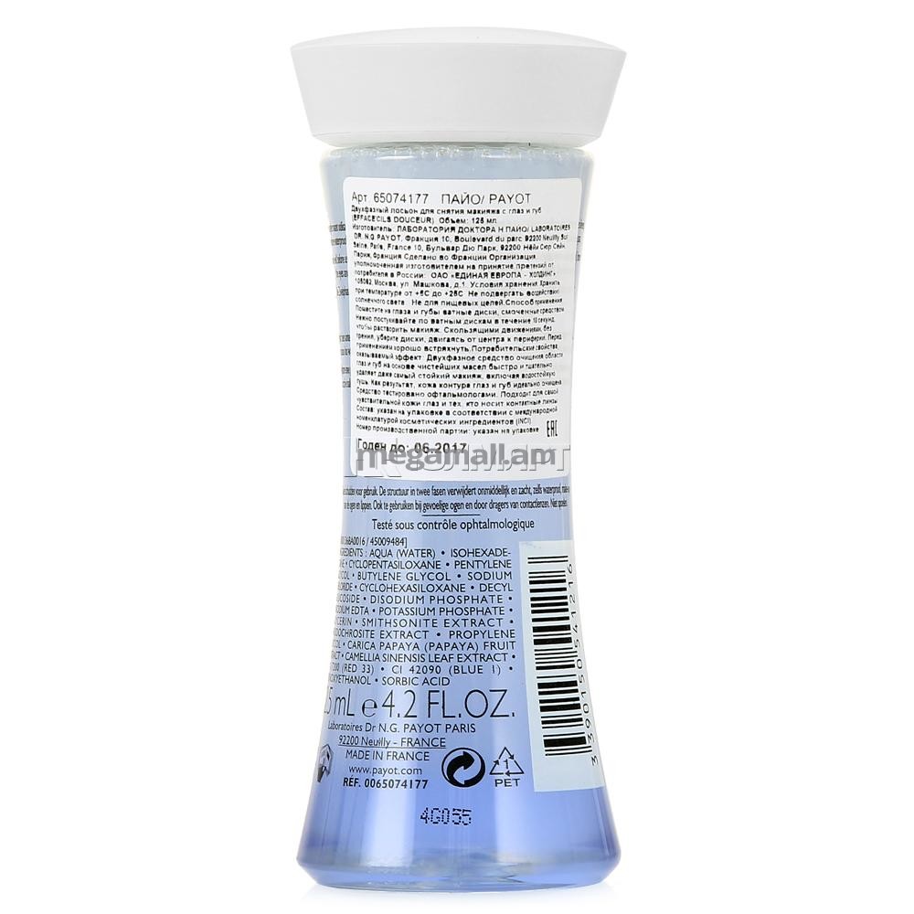Двухфазный лосьон Payot Efface'Cils Douceur линии Les Demaquillantes на основе чистейших масел быстро и тщательно удаляет даже самый стойкий макияж, включая водостойкую тушь. Благодаря мягкой формуле, подходит для чувствительной кожи глаз и тех, кто носит контактные линзы. Входящий в состав экстракт чайного древа уменьшает раздражение, ускоряет микроциркуляцию и смягчает кожу, а экстракт папайи стимулирует клеточное обновление и возвращает здоровое сияние.Двухфазный лосьон Payot Efface'Cils Douceur линии Les Demaquillantes на основе чистейших масел быстро и тщательно удаляет даже самый стойкий макияж, включая водостойкую тушь. Благодаря мягкой формуле, подходит для чувствительной кожи глаз и тех, кто носит контактные линзы. Входящий в состав экстракт чайного древа уменьшает раздражение, ускоряет микроциркуляцию и смягчает кожу, а экстракт папайи стимулирует клеточное обновление и возвращает здоровое сияние.