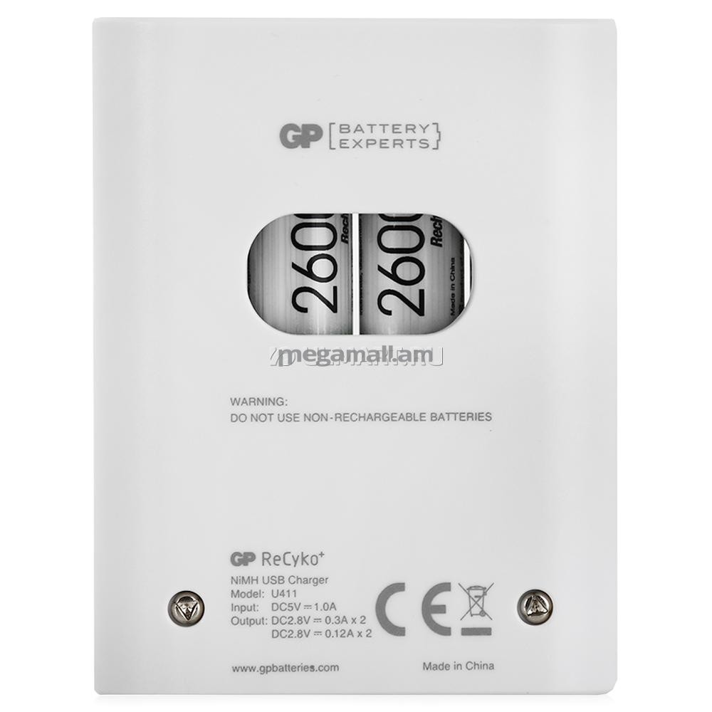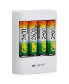 Зарядное устройство для аккумуляторных батарей типоразмера АА, ААА, автоматическое отключение, время зарядки 8 часов, LED индикаторы, в комплекте 4 предзаряженных аккумулятора АА 2600 мАч с низкой скоростью саморазряда.