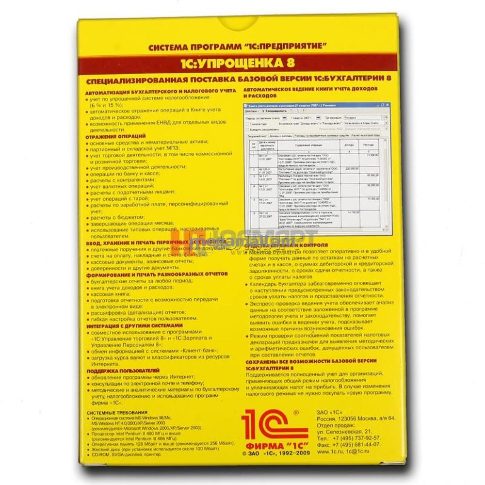 Особенности"1С:Упрощенка 8" является специализированной поставкой программы "1С:Бухгалтерия 8. Базовая версия".
