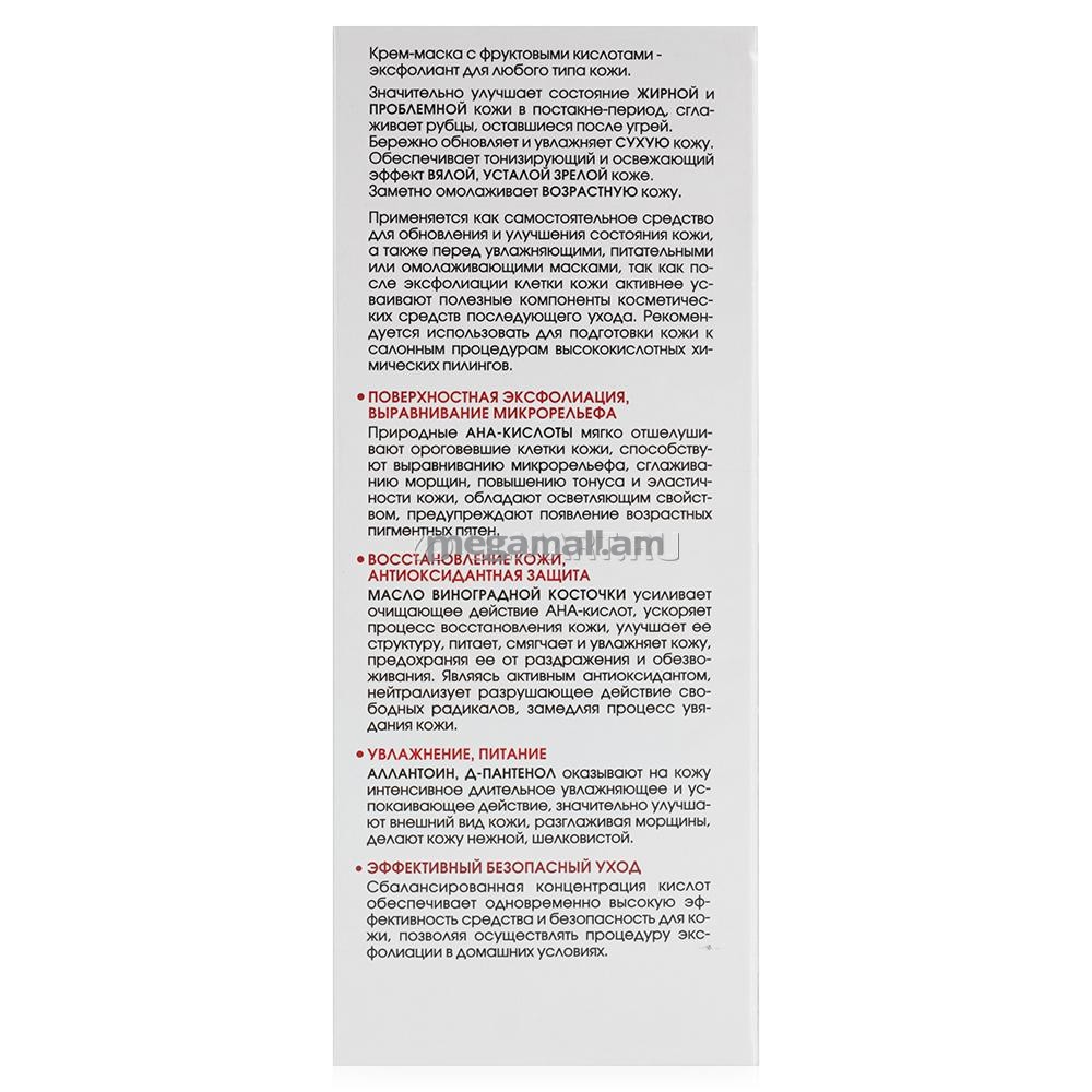 СоставAqua, glycolic acid, potassium cetyl phosphate, diethylene glycol stearate, triethanolamine, stearic acid, lactic acid, vitis vinifera (grape) seed oil, panthenol, tartaric acid, citric acid, allantoin, bht, benzyl alcohol, methylchloroisothiazolinone, methylisothiazolinone.