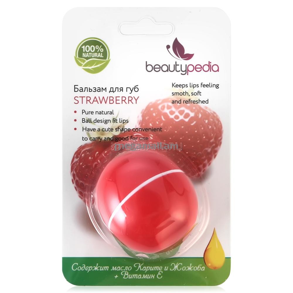 Увлажняющий бальзам Beautypedia «Клубника» - это идеальный уход и защита кожи губ в любое время года. Благодаря входящим в состав натуральным ингредиентам продукт придает вашим губам естественное увлажнение и объем. Высокоэффективная формула без парабенов и вазелина, обогащенная антиоксидантами, витамином Е, восстанавливающими маслами карите и жожоба, бережно ухаживает за нежной кожей ваших губ, делая их притягательными и соблазнительными, а легкий, приятный аромат создаст хорошее настроение. Компактные размеры позволяют средству поместиться в любую сумочку, а благодаря необычной форме, вы с легкостью отыщете его в любой момент, что делает бальзам незаменимым спутником на пути к идеальному внешнему виду.