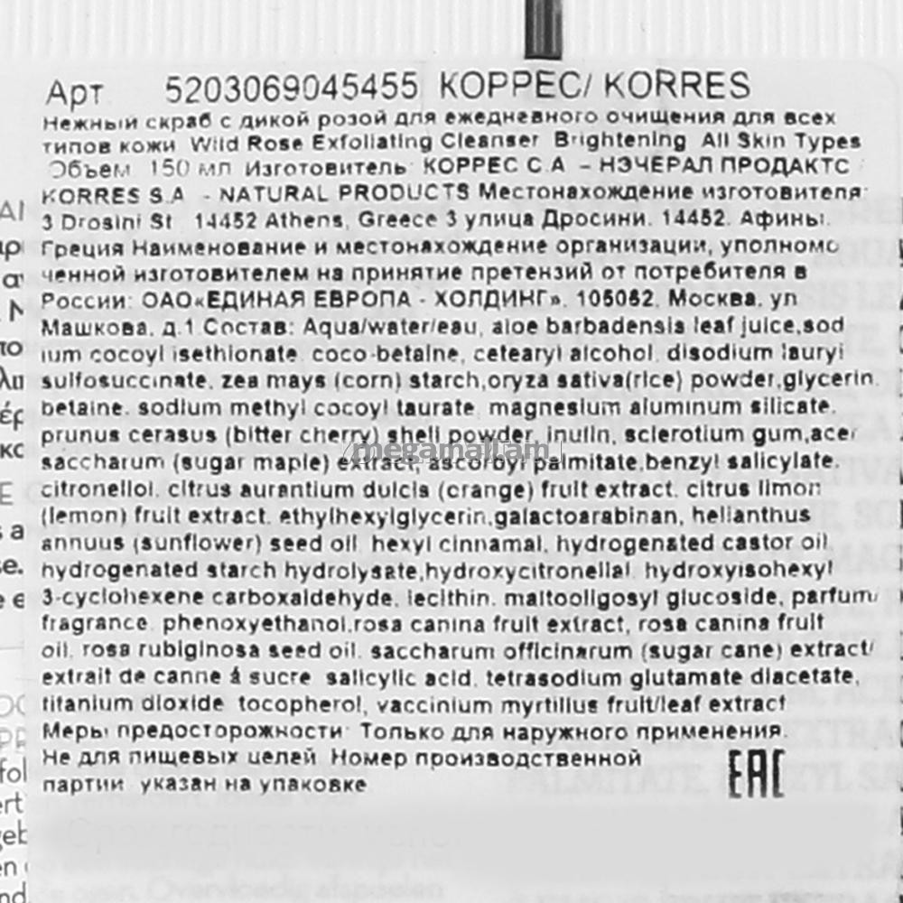 Скраб для лица Korres с дикой розой, 150 мл, для ежедневного очищения [5203069045455] [5203069045455]