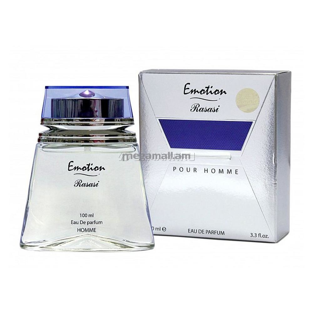 Rasasi Emotion Homme (Расаси Эмоции для Мужчин). Аромат, навевающий воспоминания о прошлом и мечты о будущем. Аромат с Востока для мужчин разных поколений. Эмоции человека уникальны. Он чувствует, поэтому он существует. Нежные, защищающие, уязвимые, романтичные. Одно дуновение - все, что необходимо, чтобы понести вас по волнам Эмоций… Мягкое пожатие рук под небом, залитым лунным светом. Нежный шепот, уносимый легким ветерком. Вспышка страсти, когда ваши взгляды встречаются. Позвольте аромату Эмоций очаровать вас магией волшебства. Что представляет жизнь без Эмоций? Живите и чувствуйте жизнь…Ни с чем другим, а только с Расаси!