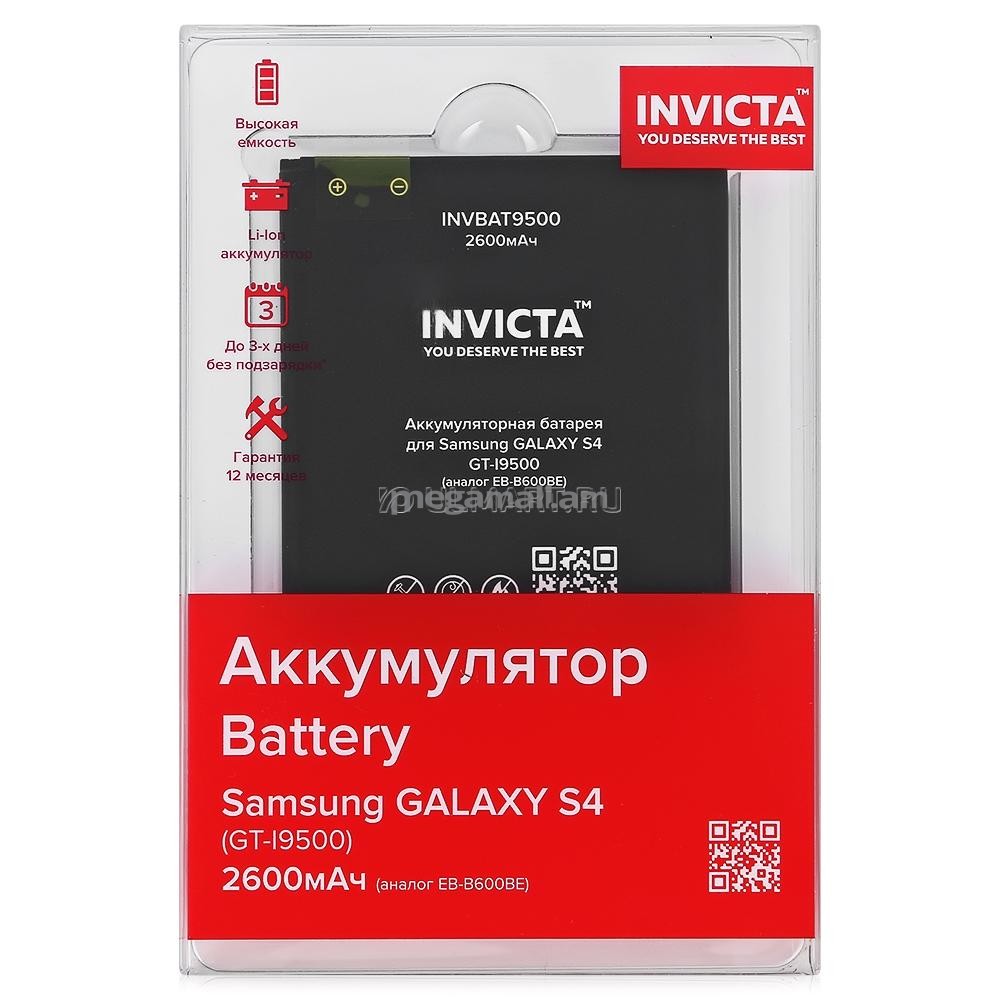 Аккумулятор Invicta для Samsung Galaxy S4 (i9500) полностью совместим с данным цифровым устройством. Батарея обладает высокой ёмкостью, её заряда хватает до трёх дней без подзарядки. Встроенный модуль безопасности предохранит ваше устройство от перегрева, перезаряда и короткого замыкания, значительно продлевая срок службы аппарата.