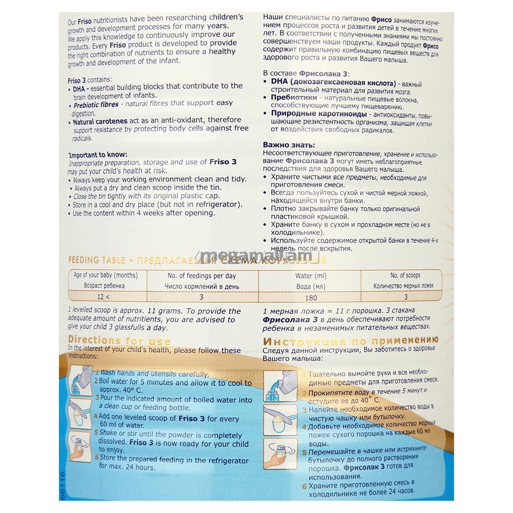 Фрисолак 3 - питательный напиток со сбалансированным составом и нежным ванильным вкусом, рекомендованный для детей от года. Использование данного молочного напитка обогащает рацион ребенка витаминами, микроэлементами, антиоксидантами и ПНЖК, необходимыми для активного роста, интеллектуального и физического развития. Благодаря технологии специальной обработки белка, смесь превосходно усваивается, подходит как в качестве полноценной составляющей рациона, так и для приготовления блюд на молочной основе.Фрисолак 3 - питательный напиток со сбалансированным составом и нежным ванильным вкусом, рекомендованный для детей от года. Использование данного молочного напитка обогащает рацион ребенка витаминами, микроэлементами, антиоксидантами и ПНЖК, необходимыми для активного роста, интеллектуального и физического развития. Благодаря технологии специальной обработки белка, смесь превосходно усваивается, подходит как в качестве полноценной составляющей рациона, так и для приготовления блюд на молочной основе.
