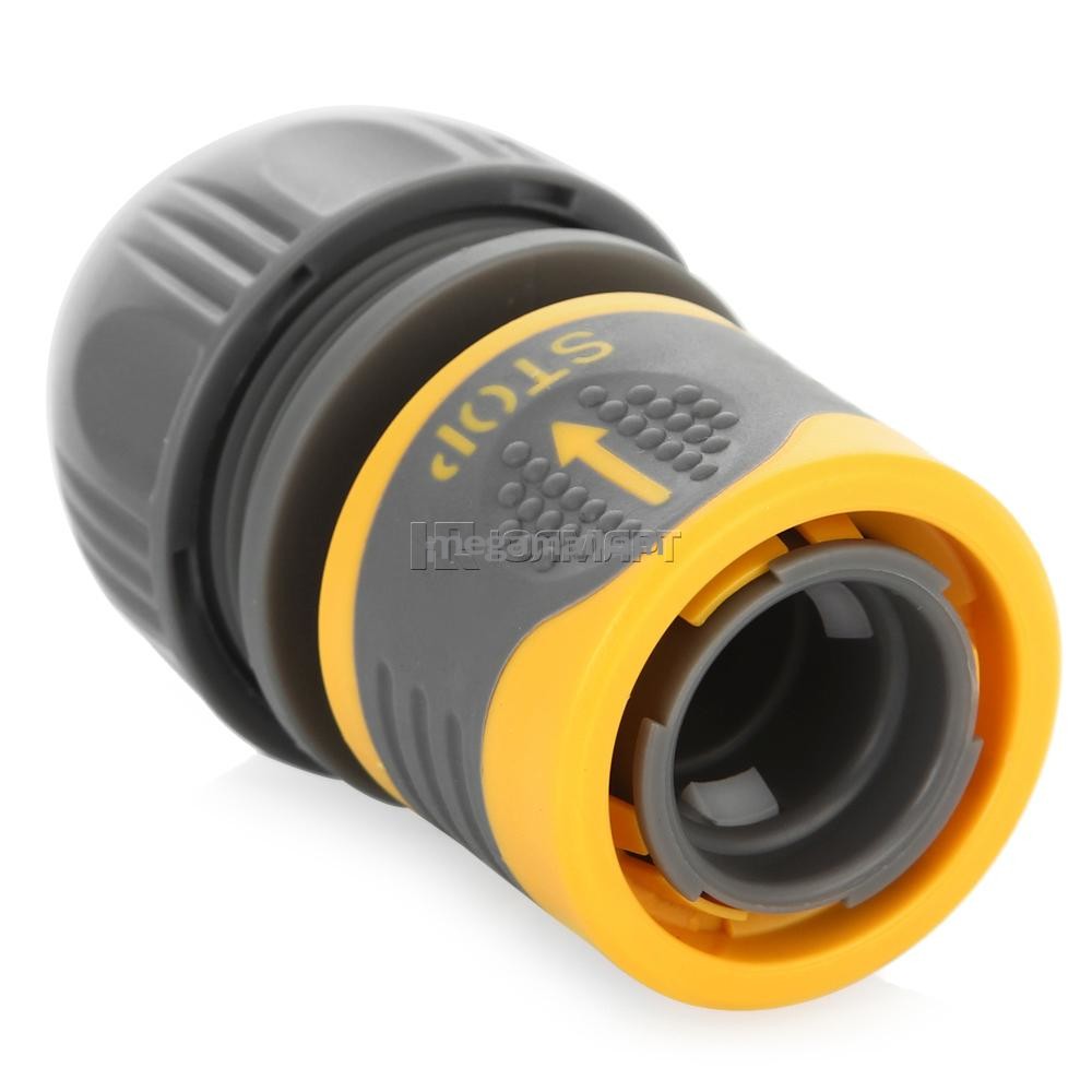 Надевается на шланг. Предназначен для быстрого и многократного подключения распыляющей насадки к шлангу. За счет функции аквастопа подача напора автоматически прекращается при отсоединении насадки от шланга и возобновляется при подсоединении.
