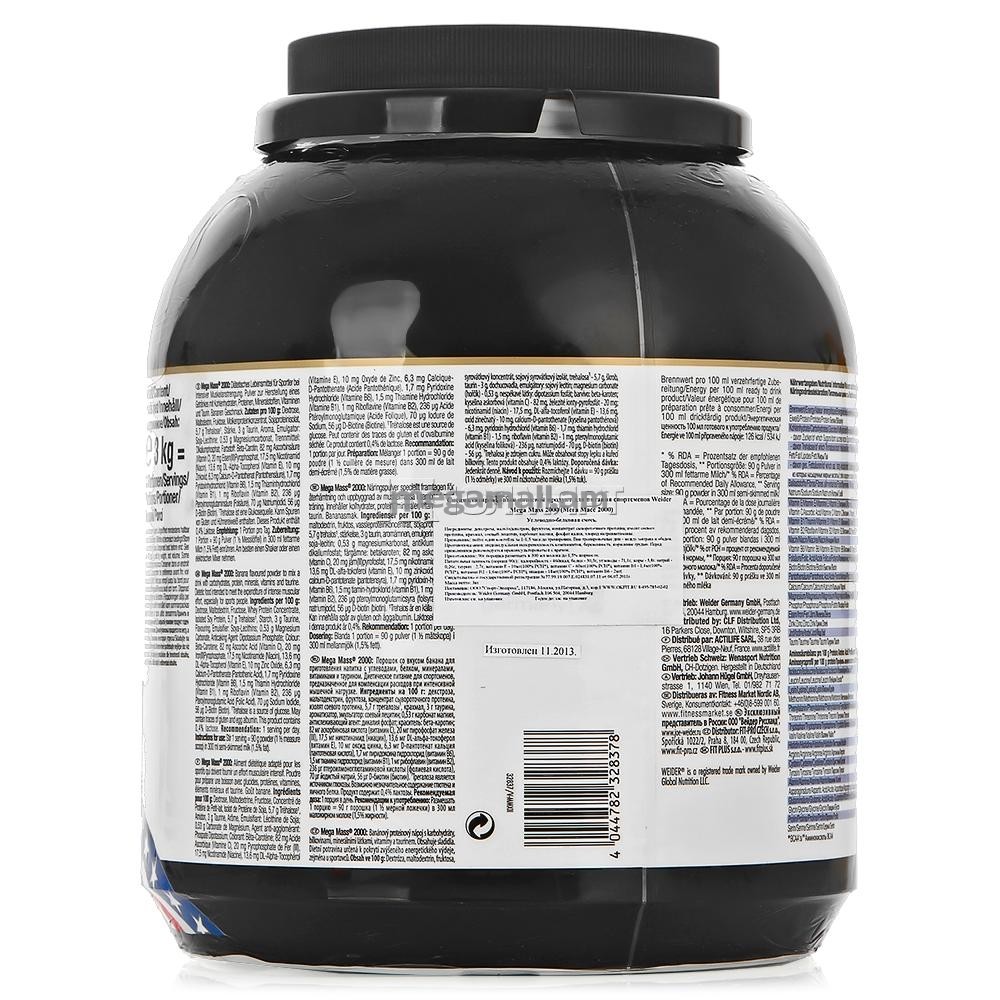 Mega Mass 2000 - высококачественный продукт для наращивания мышечной массы. Белковая составляющая - это концентрат молочного протеина и изолят соевого протеина. В порции коктейля содержатся витамины и минералы в оптимальных количествах. В банке Mega Mass 2000 есть мерная ложка.Mega Mass 2000 - высококачественный продукт для наращивания мышечной массы. Белковая составляющая - это концентрат молочного протеина и изолят соевого протеина. В порции коктейля содержатся витамины и минералы в оптимальных количествах. В банке Mega Mass 2000 есть мерная ложка.