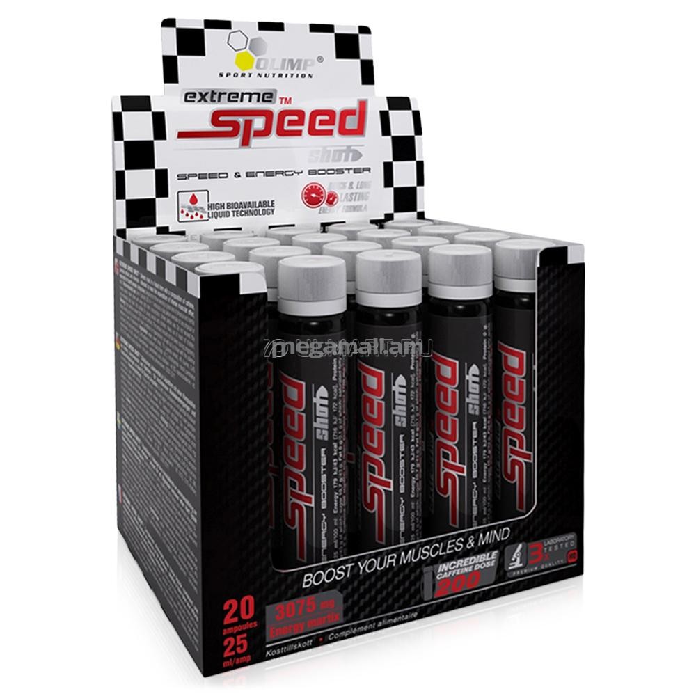 Extreme Speed Shot - инновационный энергетический препарат разработан лабораторией Olimp, который уже хорошо отрекомендовал себя на рынке спортивного питания. Ингредиенты Extreme Speed Shot (Уникальная энергетическая матрица) специально подбирались так, чтоб их сочетание давало максимально возможный энергетический эффект. Препарат контролирует выработку организмом энергии во время ее дефицита. А новая технология жидких продуктов увеличивает скорость ассимиляции ингредиентов организмом. Как уже было сказано, все составные активные веществаExtreme Speed Shot тщательно отбирались и рассчитывалась их максимально эффективное сочетание. Основной ингредиент продукта - кофеин - содержится как в чистом кристаллическом виде так и в виде экстракта гуараны. Именно кофеин полученный организмом из экстракта гуараны гарантирует пролонгированное свойство энергетика - он обеспечит ощущение бодрости на протяжении 5 часов после приема. Такое сочетание разных видов кофеина обеспечит моментальный результат сразу после приема и закрепит его на протяжение всего тренировочного процесса. Но в свою очередь высокие энергетические затраты сопровождаются и явными катаболическими процессами (не только жировых тканей, но и мышечных).