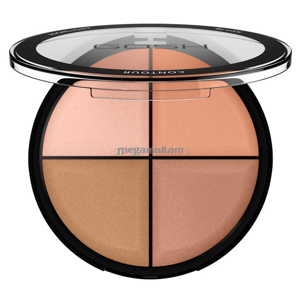 Contour’n Strobe Kit – это эксклюзивная must-have палетка, состоящая из хайлайтера, полуматовых румян и двух оттенков бронзера: блестящий и матовый. Идеальна для контуринга, стробинга и хайлайтинга. Все 4 продукта, входящие в состав палетки имеют мягкую текстуру, которая легко наносится и распределяется. Тонкий пудровый слой обладает высокой покрывающей способностью и легко растушешывается, не ощущается на коже, придавая лицу и его контурам безупречный вид. Способ применения: бронзер – наносить кистью на скулы, на крылья носа, вдоль линии роста волос. Румяна - наносить кистью на щеки. Хайлайтер - наносить кистью на спинку носа, точку над верхней губой, подбородок, центр лба, скулы.