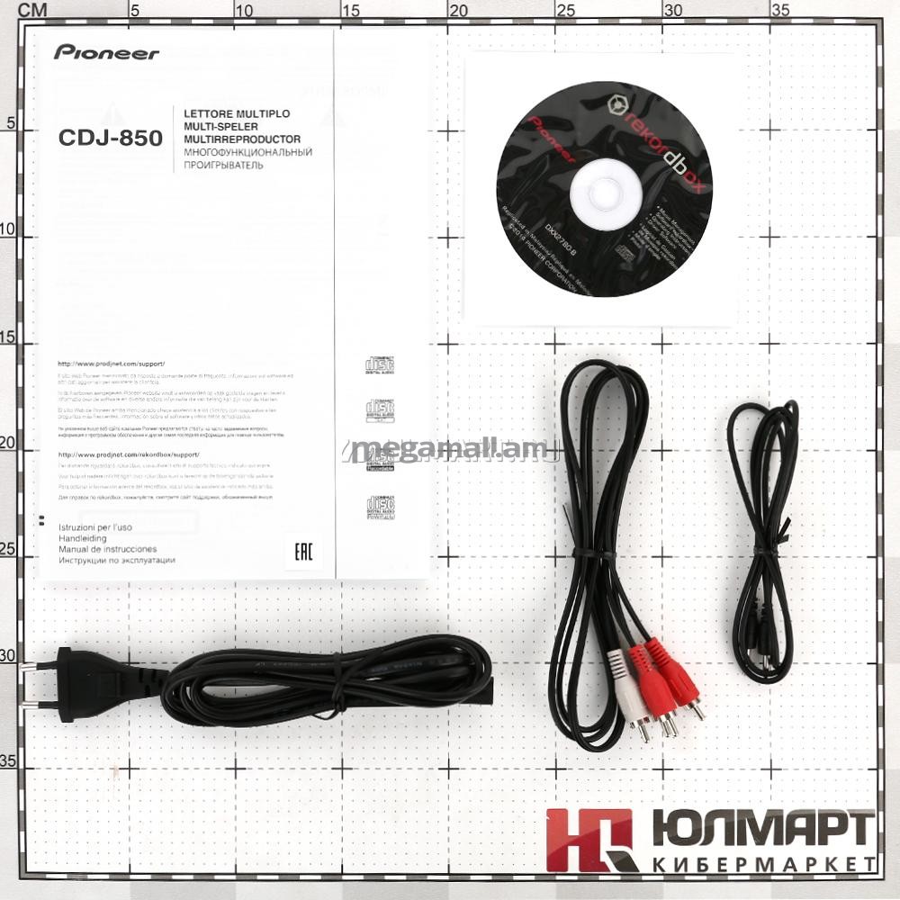 CD-проигрыватель Pioneer CDJ-850 имеет полноценный профессиональный поворотный диск (джог) диаметром 206 мм, который является индустриальным стандартом, и большой дисплей. USB интерфейс позволяет использовать плеер как контроллер для различного ПО. CDJ-850 поддерживает форматы MP3, AAC, AIFF и WAV. Модель поставляется вместе с программой управления музыкальной библиотекой rekordbox. Программа анализирует BPM и позиции битов в треках, позволяя диджеям упорядочить музыку по жанрам, а также создавать плейлисты.
