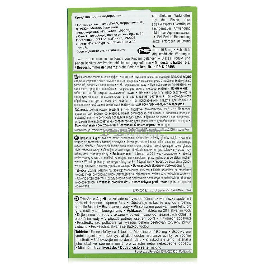 Tetra Algizit - предназначен для борьбы с водорослями при сильном их развитии. На основе своего высокоэффективного действующего вещества препарат Tetra Algizit надежно устраняет даже самые упорные водоросли. Устраняет риск отмирания аквариумных растений, заросших водорослями. При правильном применении не оказывает вредного воздействия на рыб, растения и микроорганизмы.Tetra Algizit - предназначен для борьбы с водорослями при сильном их развитии. На основе своего высокоэффективного действующего вещества препарат Tetra Algizit надежно устраняет даже самые упорные водоросли. Устраняет риск отмирания аквариумных растений, заросших водорослями. При правильном применении не оказывает вредного воздействия на рыб, растения и микроорганизмы.